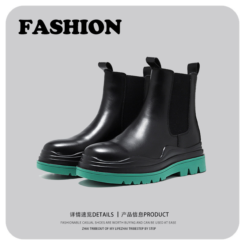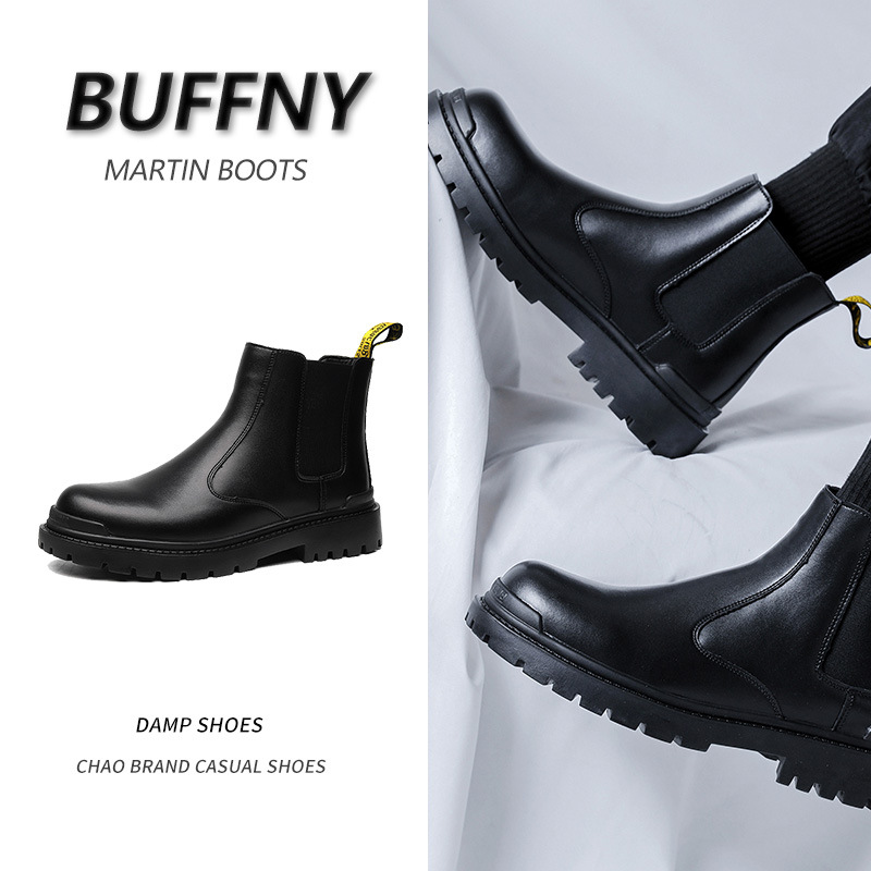 マーティンブーツの厚い底が高くなりました。ショートブーツの高級感があります。2023秋冬新作青年レトロ男性チェルシーブーツです。