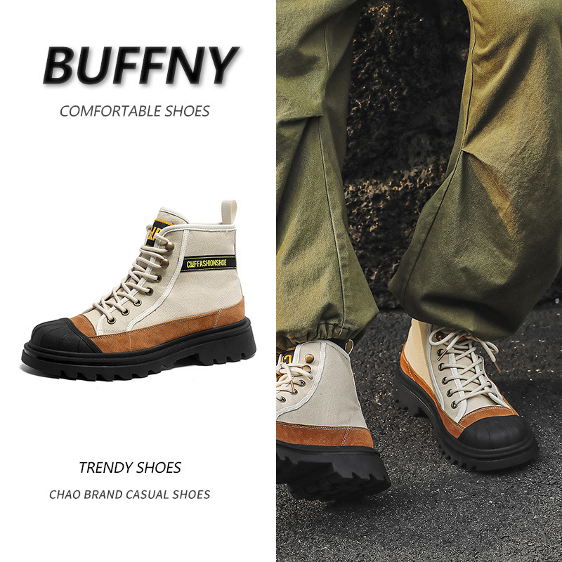 国潮アウトドア工装レトロキャンプ風マーティンブーツ男2023秋の新型青年百合ストラップ大黄ブーツ