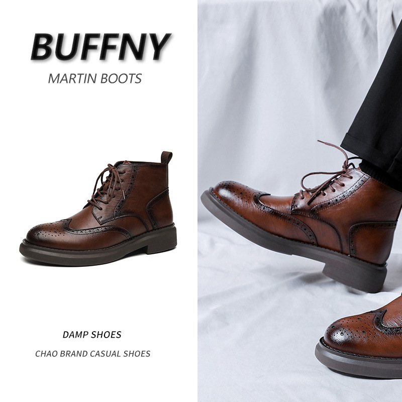 マーティンブーツのレトロなファッションの厚い底の高い靴の2023秋の新型の青年の屋外の潮流のレジャーの仕事の靴