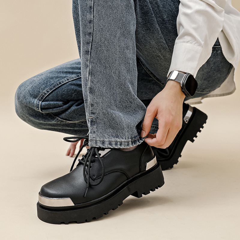 日本式の厚い底の百合のビスケットの底のカップルのビジネスの靴の2023秋冬の新型の青年のファッションの潮流の小さい靴