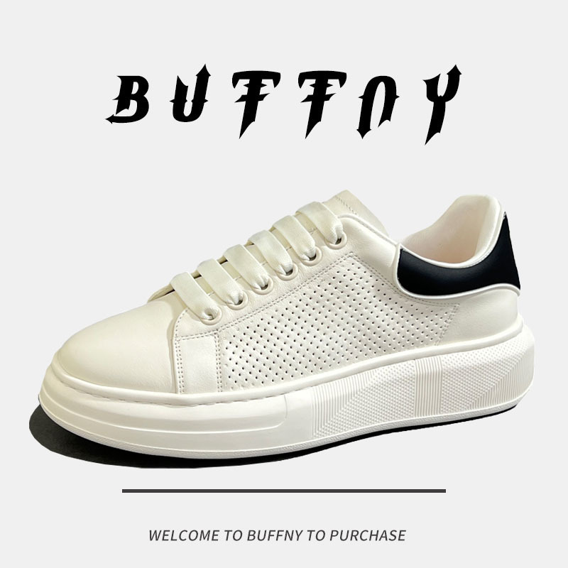白い靴 2025 新しい第一層牛革ライト高級厚底カジュアルシューズトレンディな通気性のある紳士靴多用途プラットフォームシューズ
