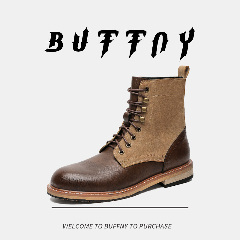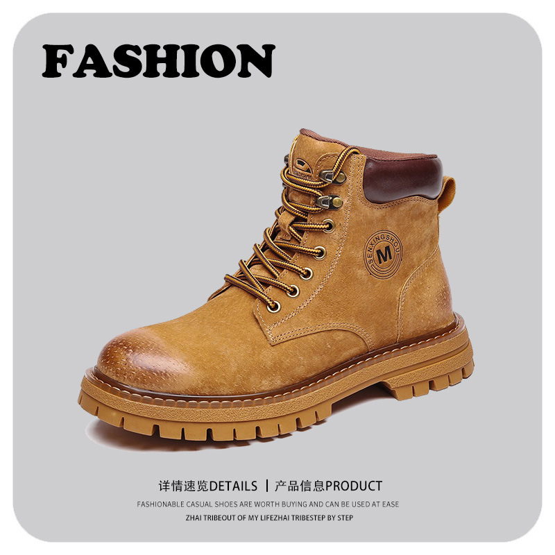 アウトドアワークブーツ2023春秋厚底イギリス風本革韓国風レトロハイカットレザーシューズマーティンブーツメンズ