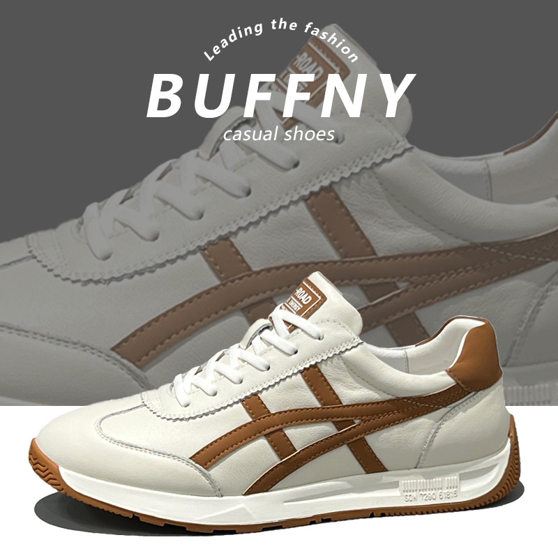 BUFFNY カジュアル白靴 2025 新しいカップルスニーカー男性と女性のための韓国スタイルのトレンディなスポーツシューズ厚底紳士靴