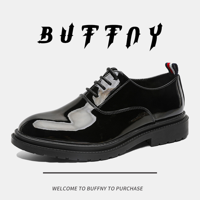 2024人の男性靴の厚い底の角の靴の男性の潮流の個性のパンクのファスナーの設計の湿っている黒色のビジネスの靴
