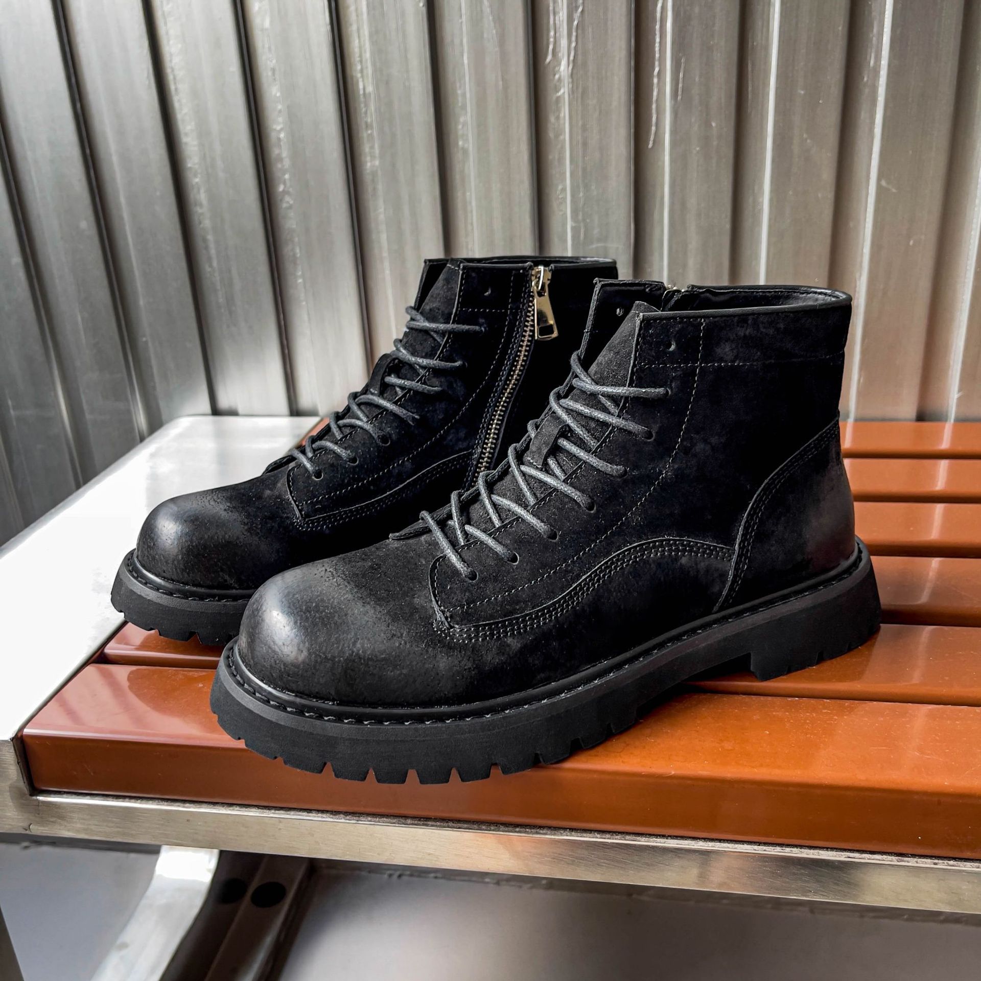 英倫は屋外の工装に合わせて本革のマーティンブーツを高くします。