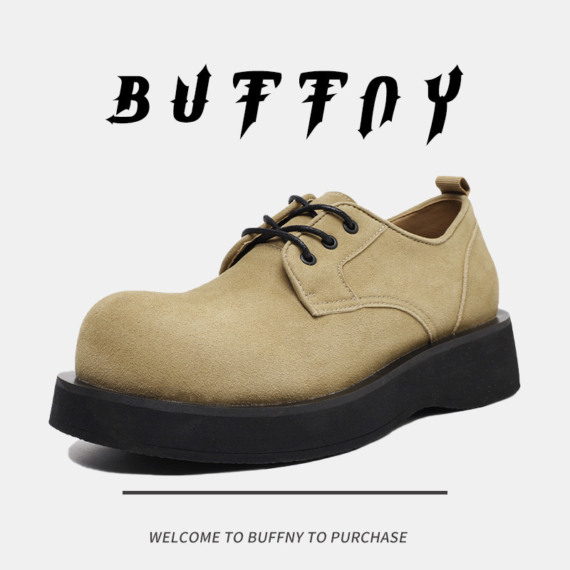 2024秋冬の大頭徳比靴の男性の金は丸い靴のネットの赤いタイプの厚い底を破壊してレジャーの工装の靴を高く上げます。