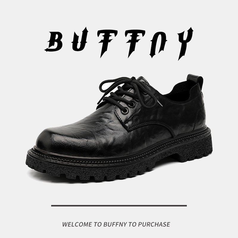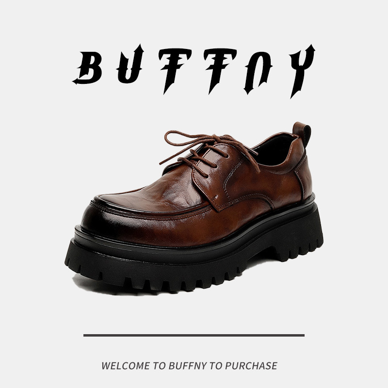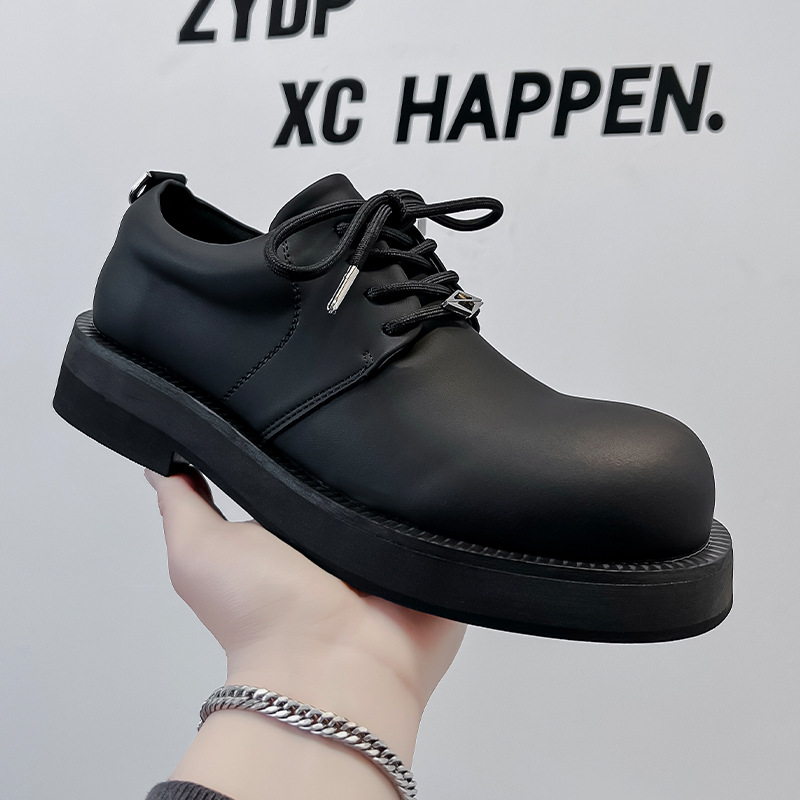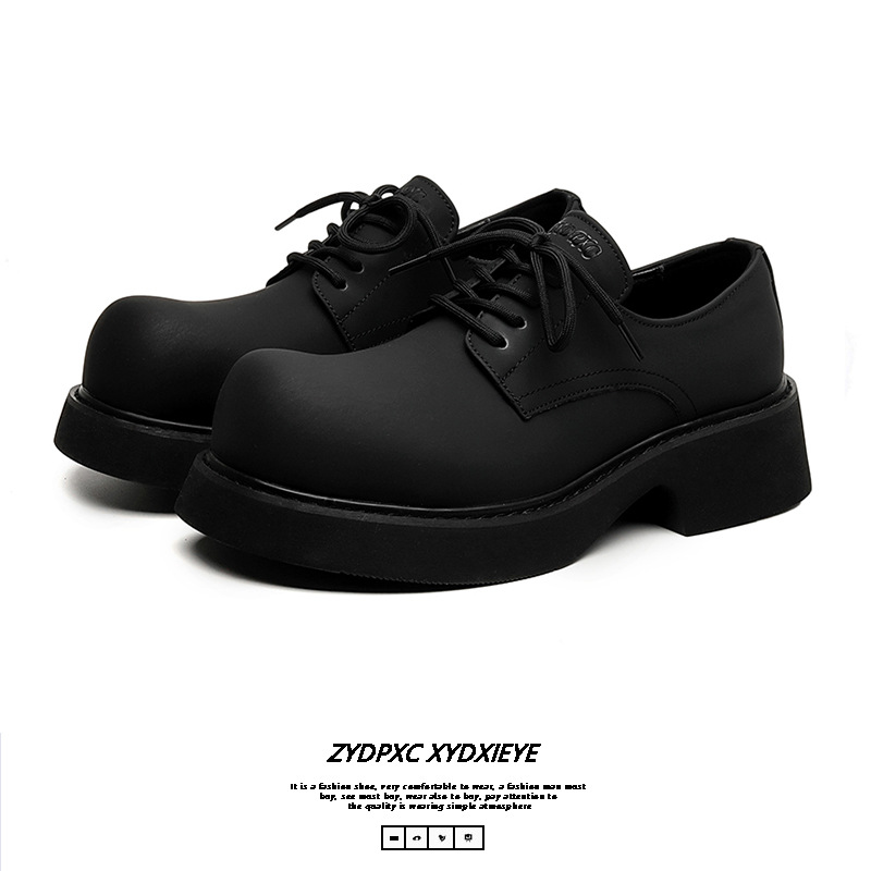 新しい厚い底の小さい大衆の大きい靴の男性のカジュアルなビジネスの丸い頭のダービーの靴の2024の暗いイギリス風の潮流