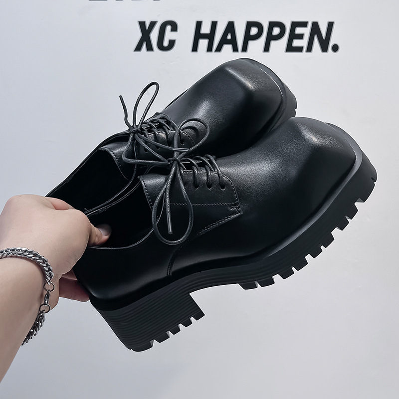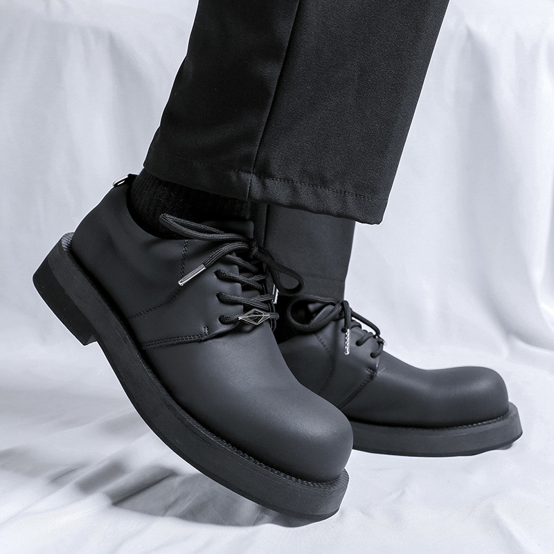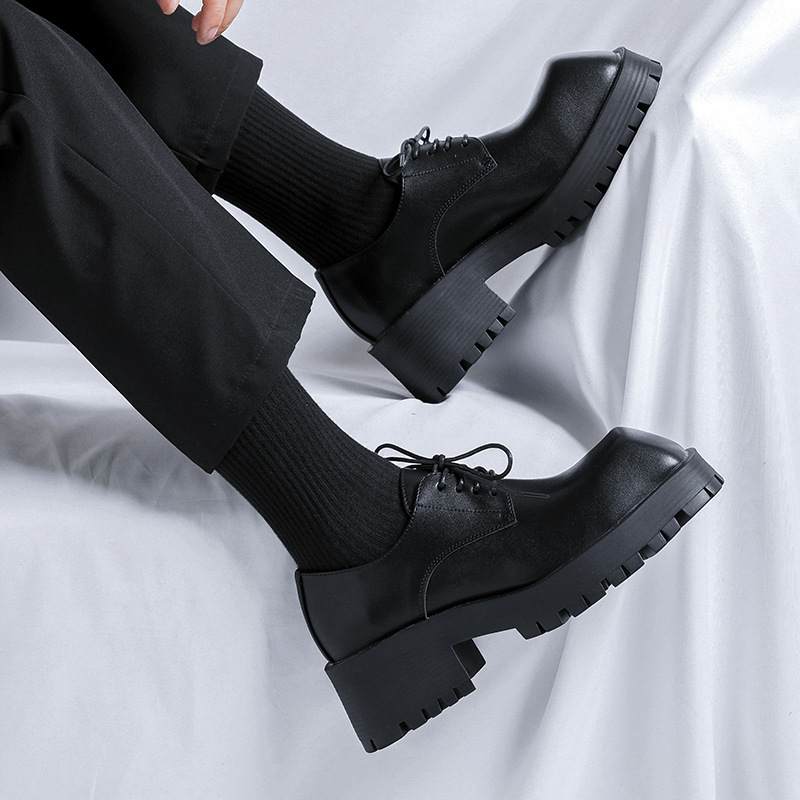 新しい厚い底の高級感のつや消しの大きい靴の男性の2024新型の英倫風の黒色は高くなりますカップルの小さい靴