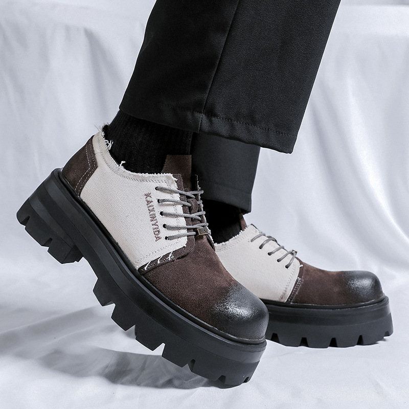 新しい厚い底の丸い靴の反絨皮の通気性のファッション2024春の新型はレジャー靴のダービー靴を高く上げます。