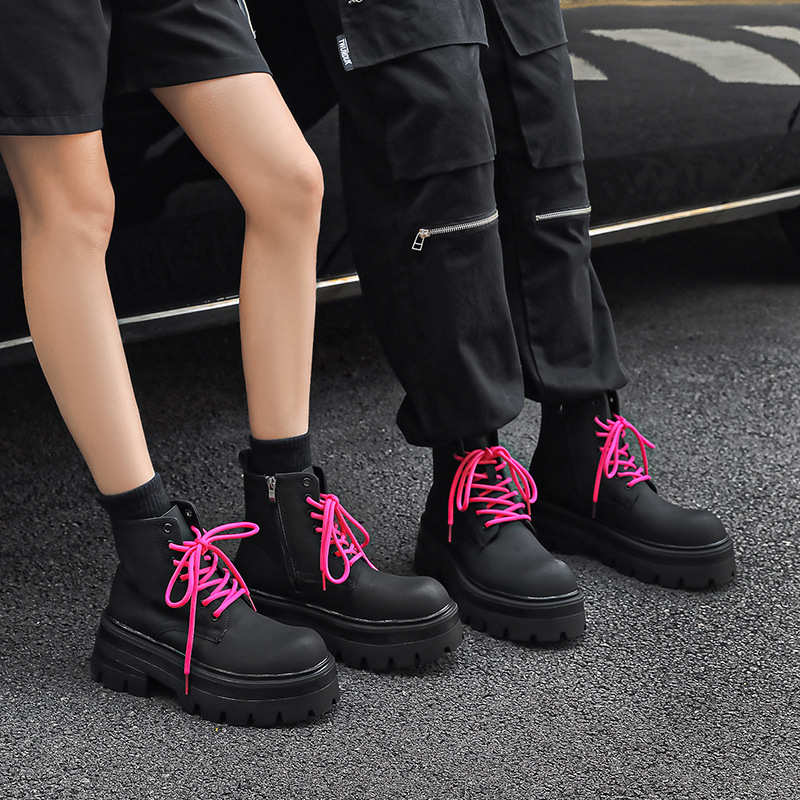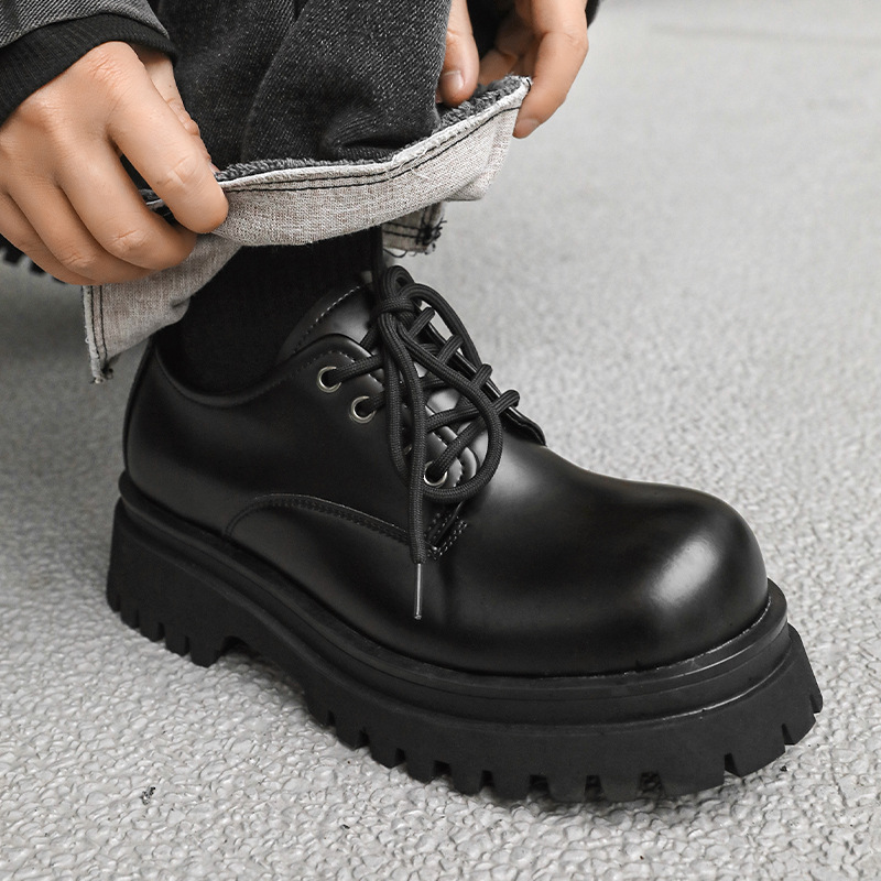 ダービー靴高級感丸首黒起爆厚い底靴男女同型マーティン靴カジュアル英倫風靴
