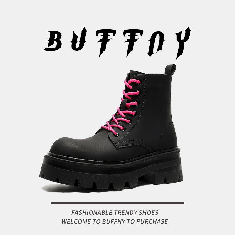 2024新品メンズシューズ春と秋の冬カジュアルレザーブーツ厚い底ファッションダービー靴メンズファッションラウンドヘッドマーティンブーツ