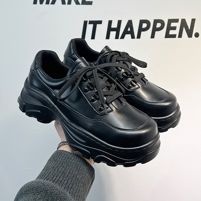 2024春と秋の厚い底が高くなりました。黒い靴はカジュアルな大部分の機能を持っています。