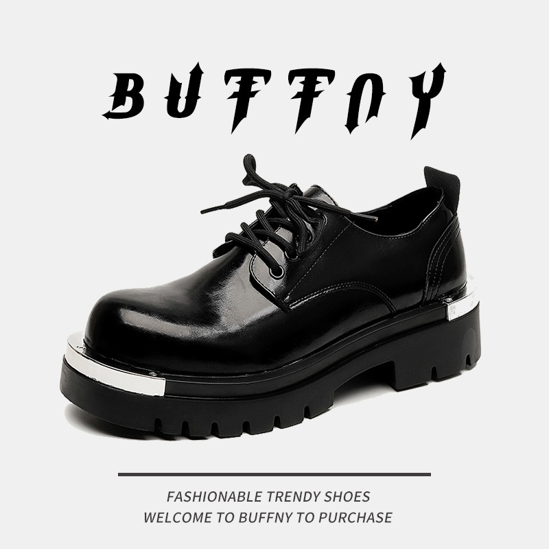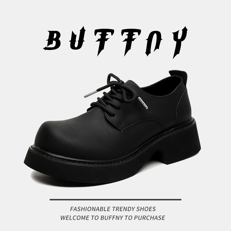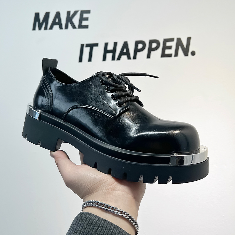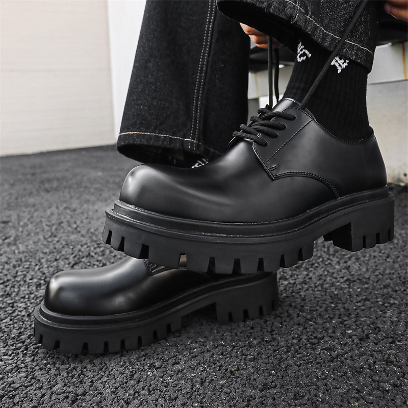 ビッグヘッド黒ダービー靴メンズ高級感革靴2024新作英倫風厚い底高くパリカジュアル靴