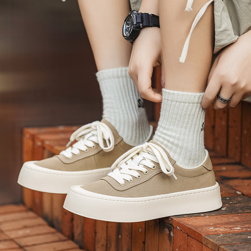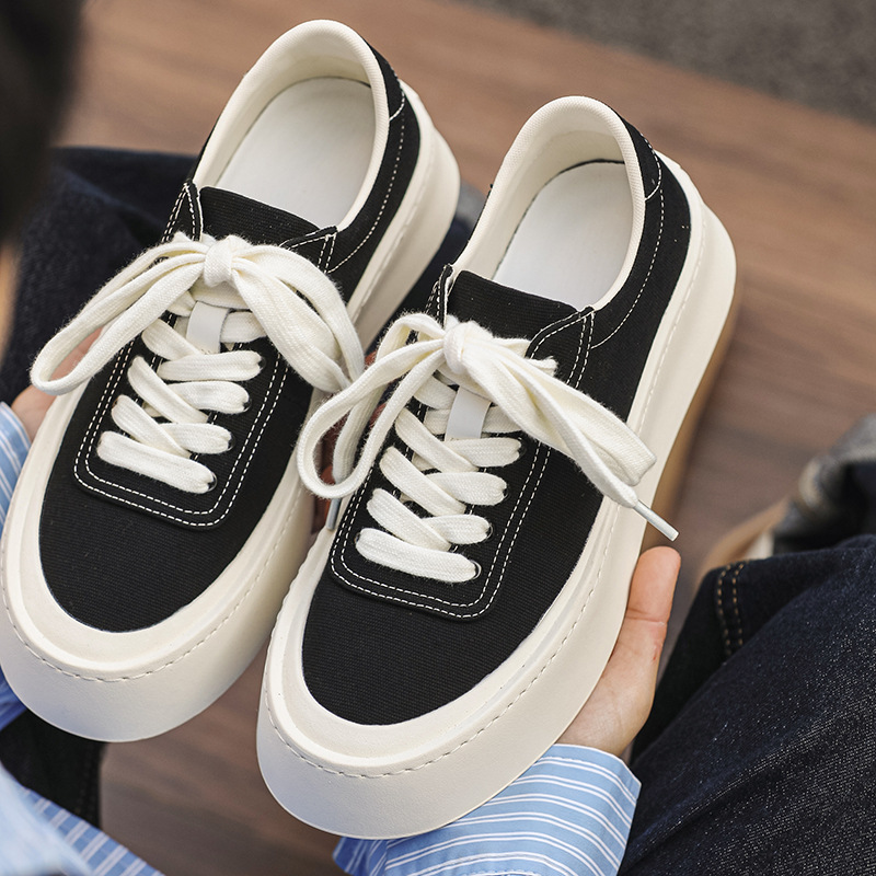 香港風の厚い底の通気性の快適なキャンバスの靴2024春の新型の国潮のひものシンプルな布の靴のファッションのスケート靴