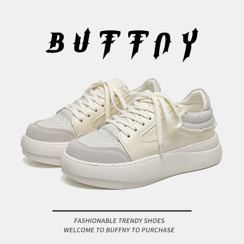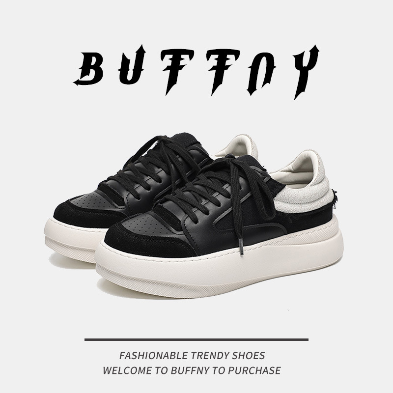 Buffny2024春の新型の白い靴の小さい大衆は厚い底のファッションのカジュアルな板の靴の男性の高くなるファッションの靴を設計します。