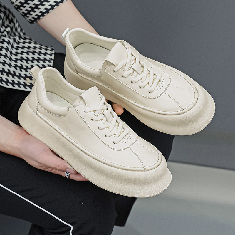 2024春夏の新型韓国版百合デザイン感運動レジャー靴男の厚い底に純色の白い靴が高くなりました。