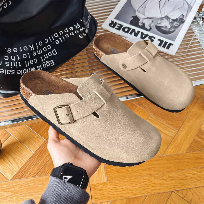 新型ボケン靴夏の新型通気コルク半托屋外滑り止めカップルの柔らかい底靴一足で湿った靴を漕ぐ