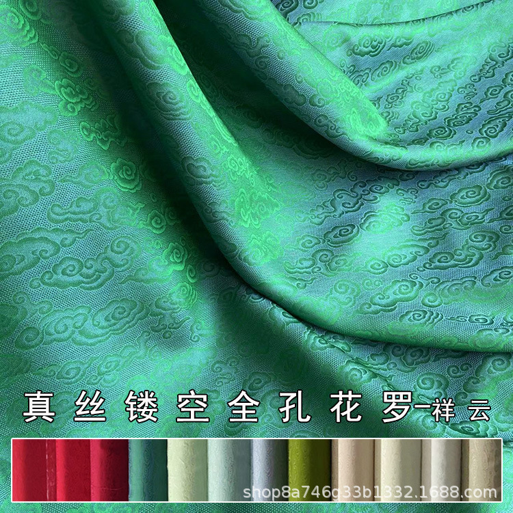 祥雲ジャカード透かし彫り花羅シルク生地透孔花羅中国式チャイナドレスシャツ漢服diyシルク生地