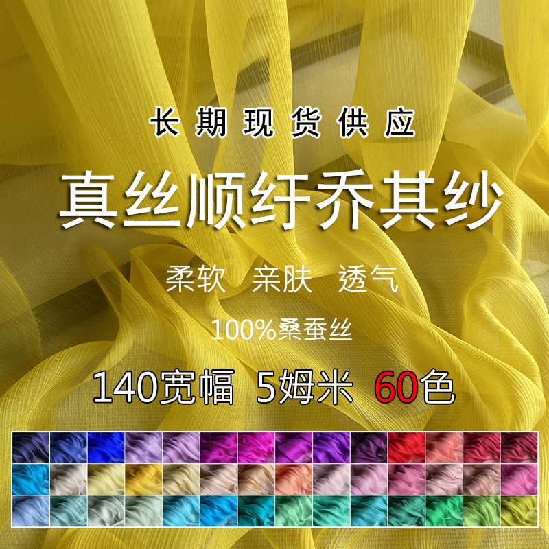 幅広6ムミシルクシフォン生地薄透け绢糸薄手シフォンDIY夏ワンピースドレス生地