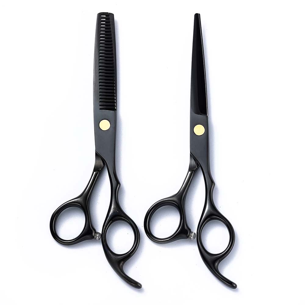 黒金理髪ハサミ440C高級理髪師ハサミ専用平歯ハサミ