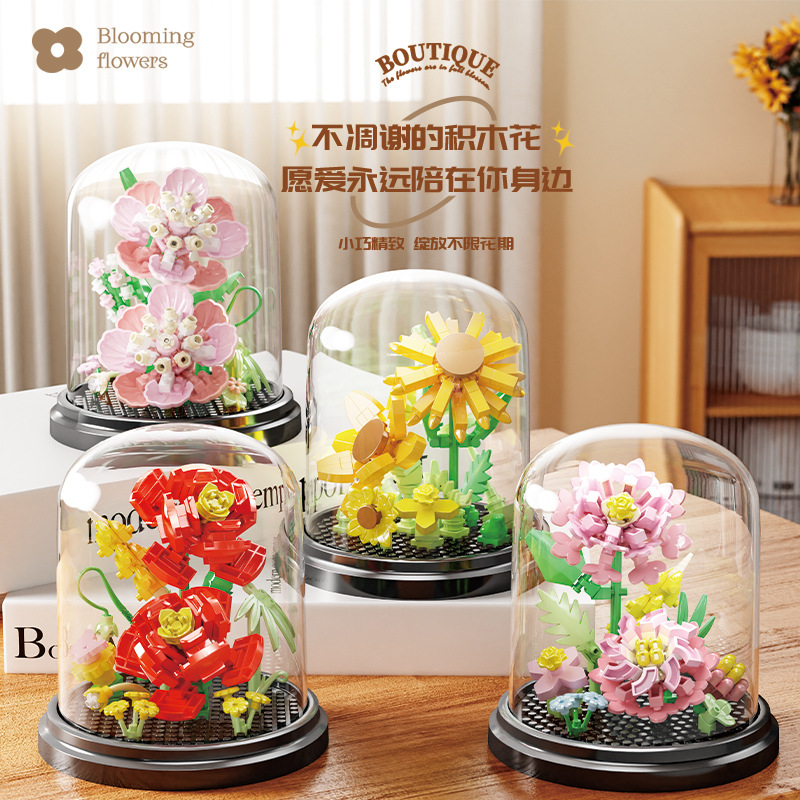 予高mini花卉ヒマワリバラ小粒益智モザイク積み木玩具模型置物プレゼント