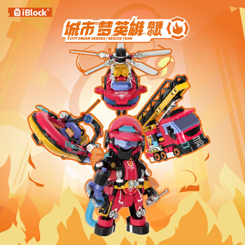 IBlock機甲シリーズ積み木人盲箱爆品児童機甲英雄シリーズは積み木玩具潮游をつづり合わせている