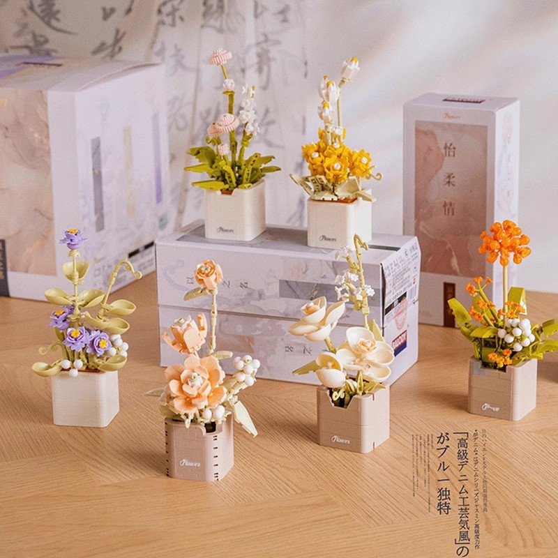 iBlock ビルディングブロック永遠の花ユリローズ胡蝶蘭シミュレーション花束ギフト組み立ておもちゃ装飾装飾品