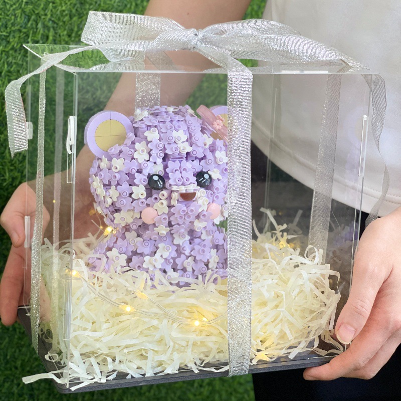 永生花積み木の噂の花の言葉のオルゴールのミニの粒の益智はおもちゃを詰めてバレンタインデーのプレゼントの女性を並べます。