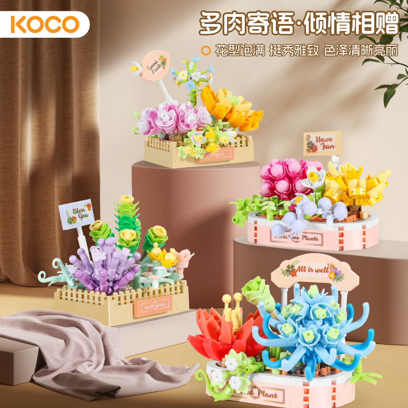 万致koco微粒子積み木多肉盆栽多シリーズ益智慧男女児diy盛り合わせ子供プレゼント