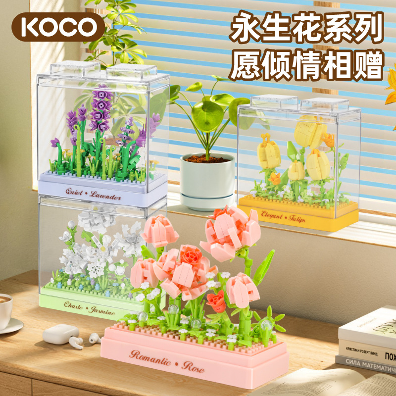 万致koco永生花シリーズジャスミン昆虫植物バラモザイク知育玩具プレゼント積み木置物