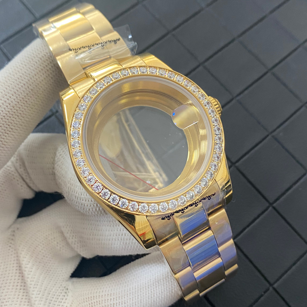 金色の石入れ精鋼ケースバンド39mmカキ式恒動藍宝ガラスは日本のn 35/36ムーブメントを入れることができます。