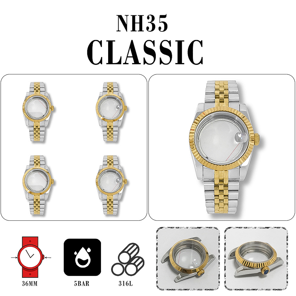 NH35水鬼底316精鋼ケースサファイアガラスは、NH35/NH36ムーブメントの組み立てに適している