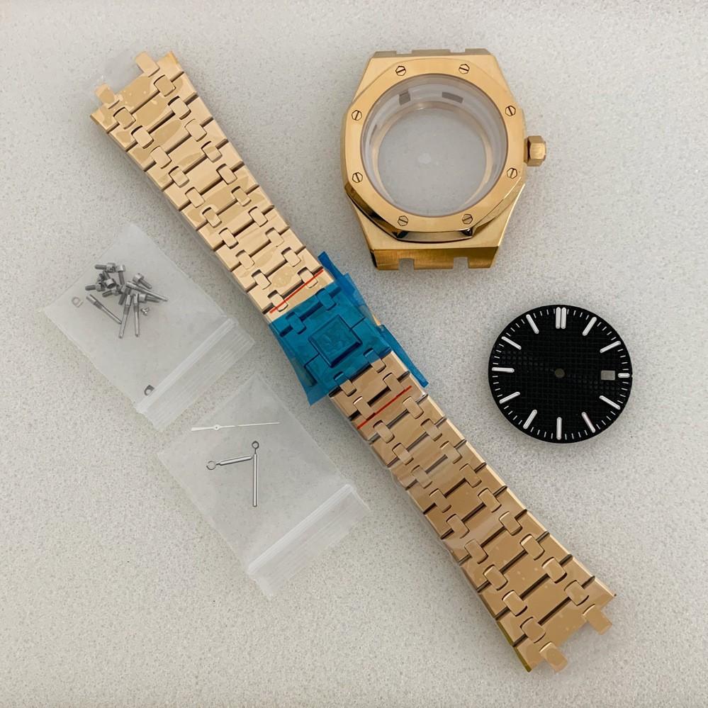 腕時計部品41mmケース + ベルト + 面サファイアガラスはnh35ムーブメントを装着するのに適している