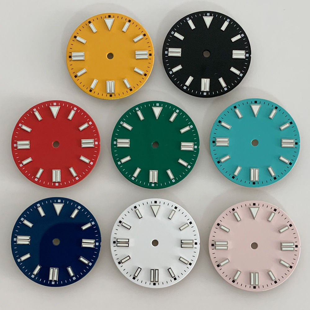 腕時計の部品を改装したオレンジ色の赤と白の色合わせ指針緑の夜光時計針は日本のnh35/36/4r7sムーブメントに適している