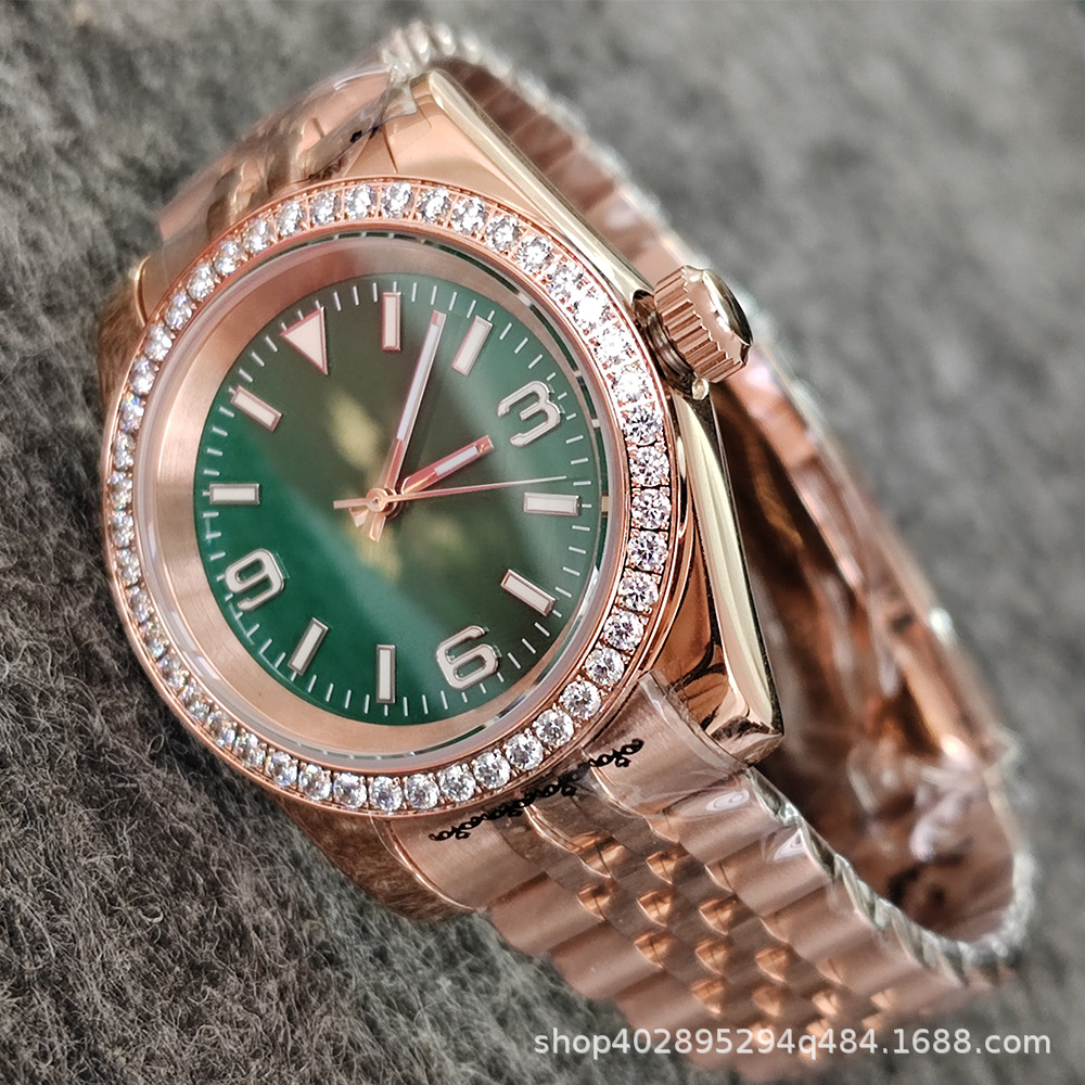 豪华な自动机械メンズテーブルnh35ムーブメント石リングサファイアガラスグリーン夜光ビジネス机械メンズテーブル