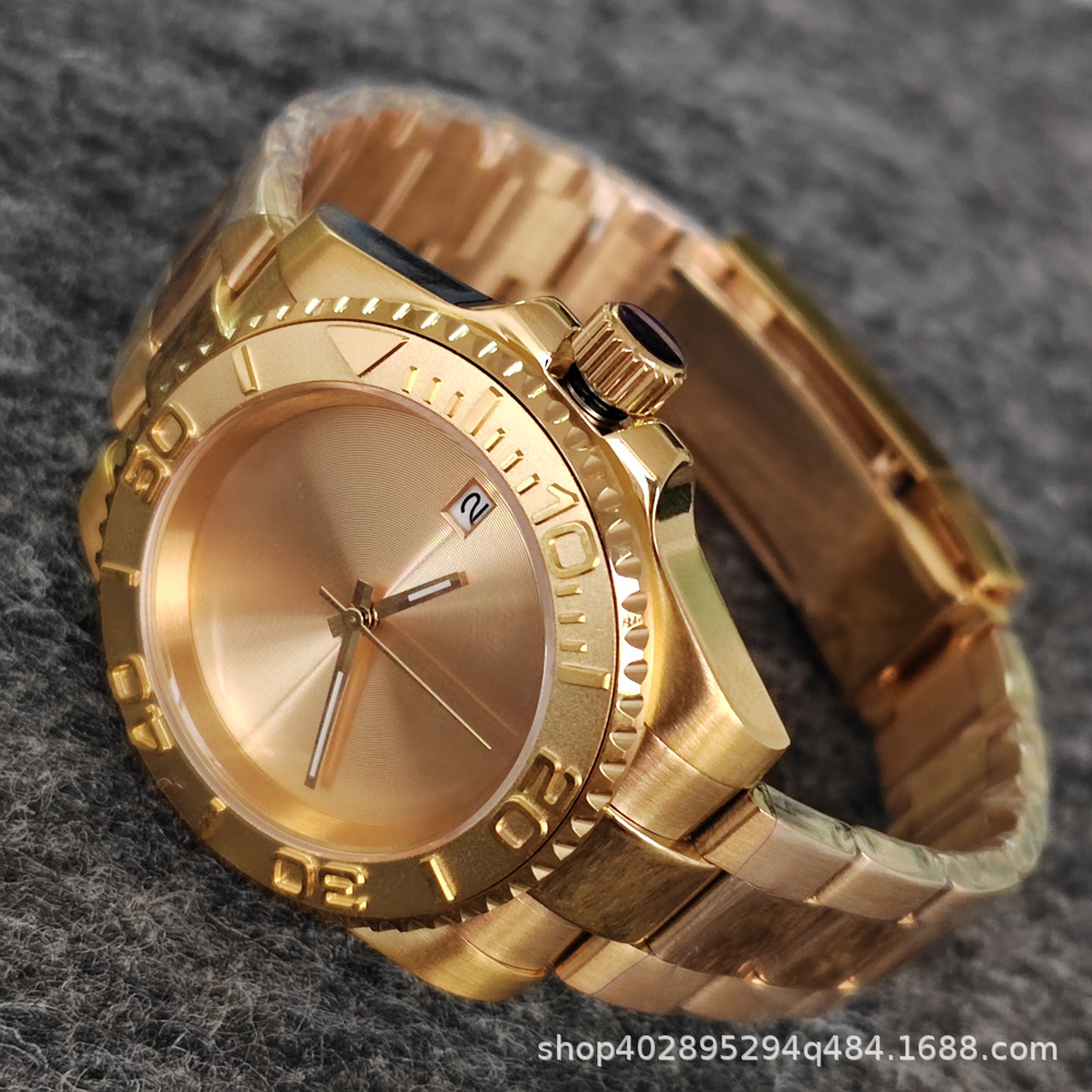 豪華な男性機械腕時計pvdメッキ薔薇精鋼ケース40mm青宝ガラスとnh35ムーブメント