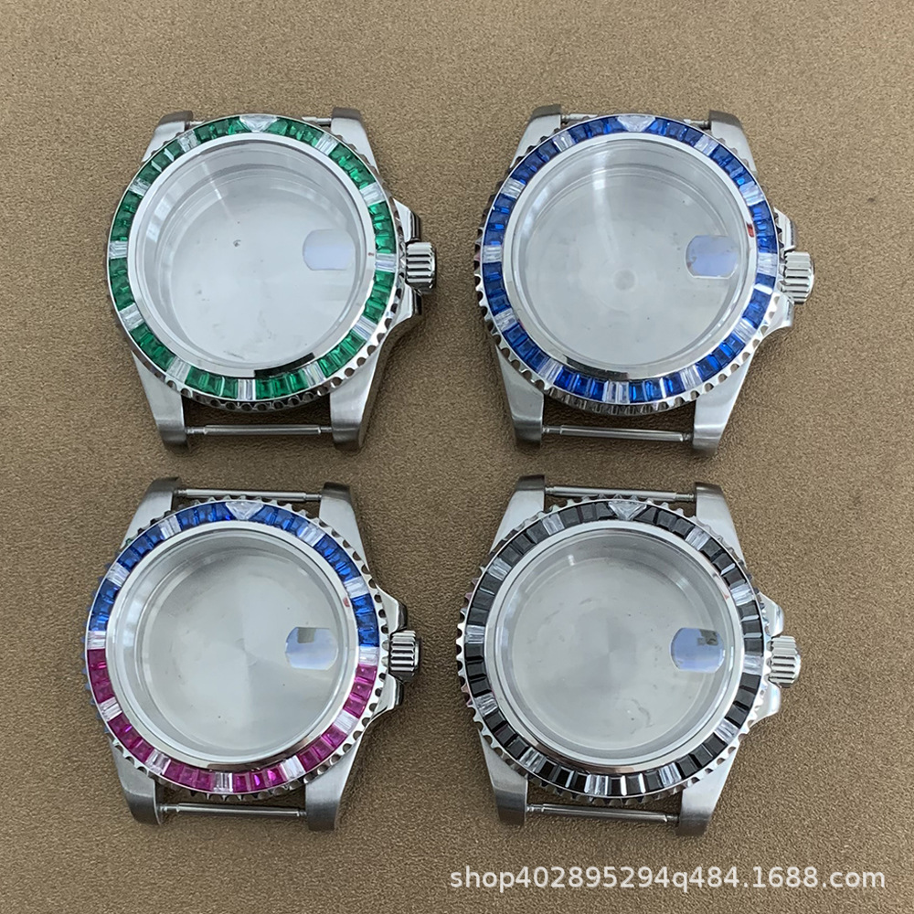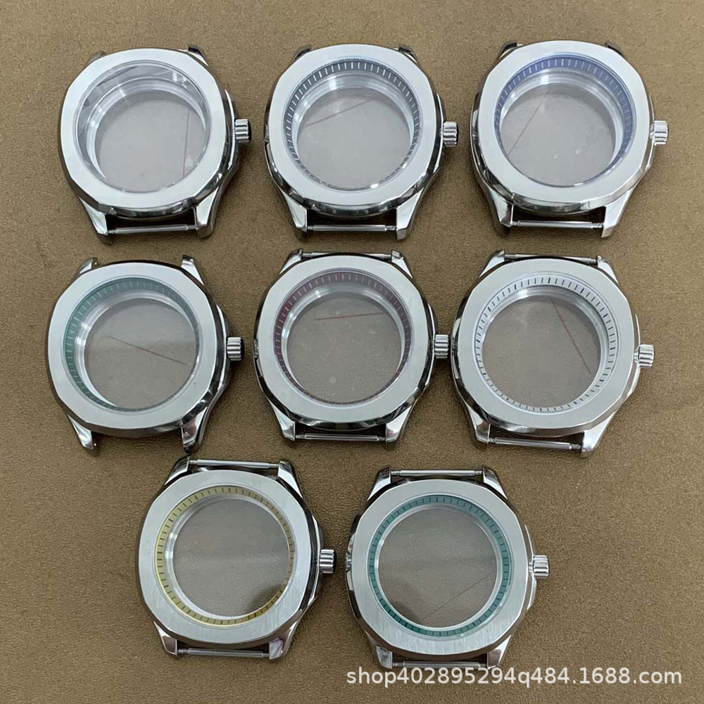 腕時計ケースnh35ケースステンレス石リングサファイアガラス40mm精鋼水晶リングケース