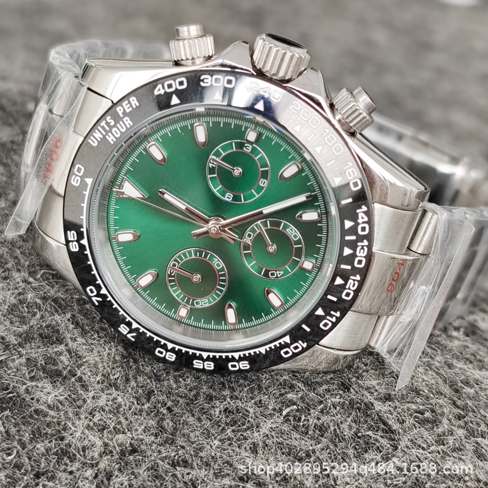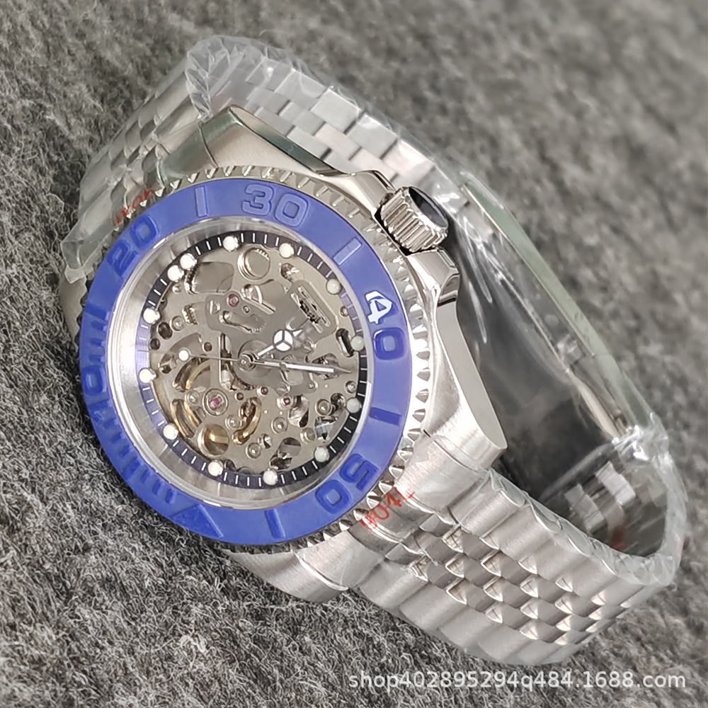 男性の透かし彫り機械腕時計40mm精鋼ケース5押刃バンド緑夜光配nh70自動ムーブメント