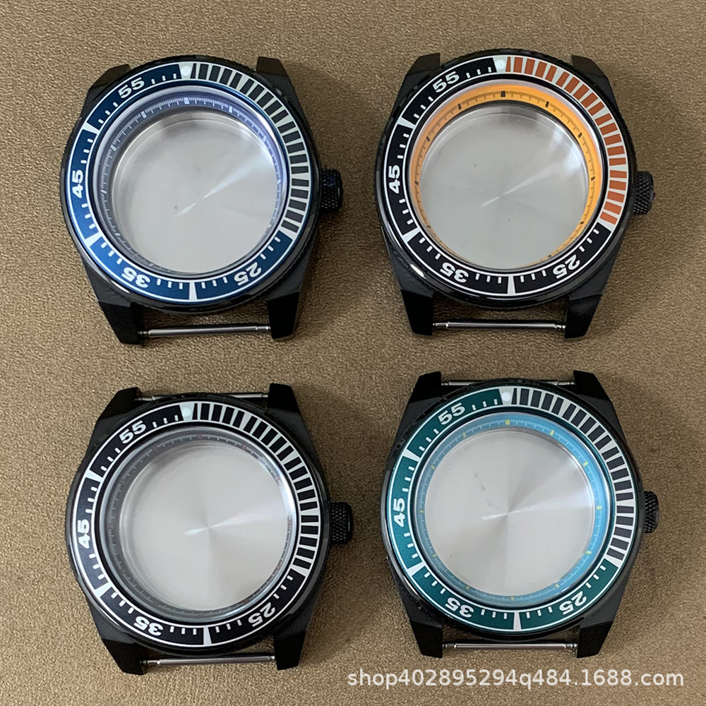 腕時計ケースnh35ケースpvd黒色ステンレスケース43mm精鋼サファイアガラス付きnh35