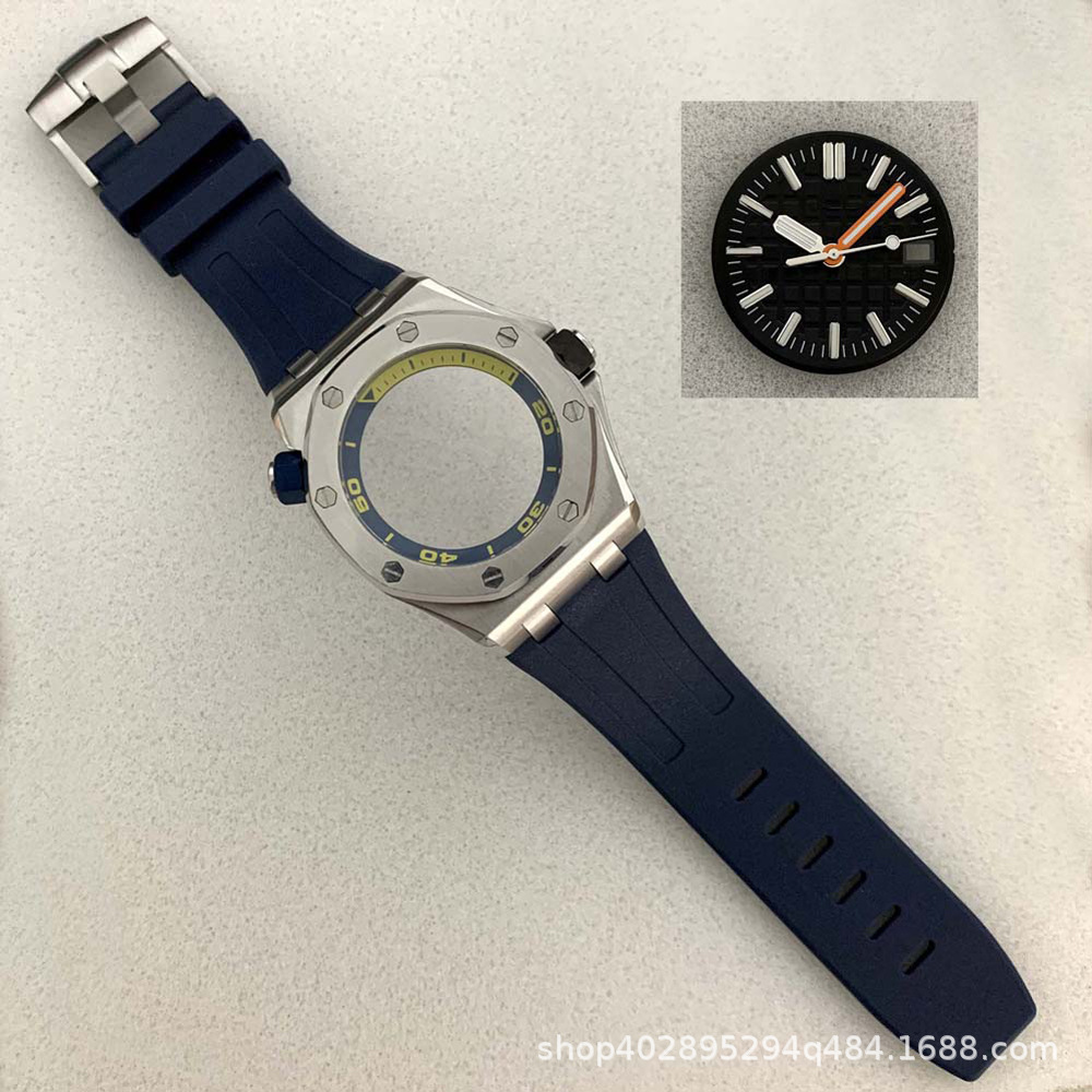 両ハンドルの42mmの精鋼ケース + 腕時計の文字板の文字通りの針のゴムの腕時計のバンドはnh35日本のムーブメントを入れることができます。