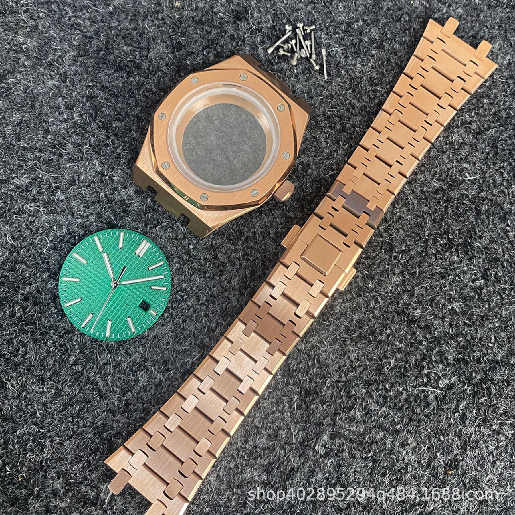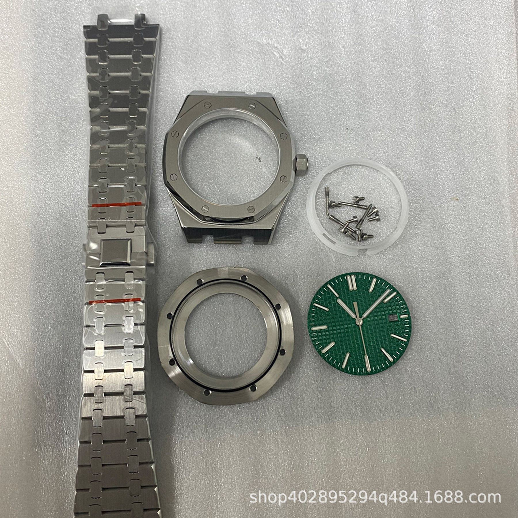 腕時計部品41mmケース + バンド + 緑面 + 指針サファイアガラスはnh35ムーブメントを装着するのに適している