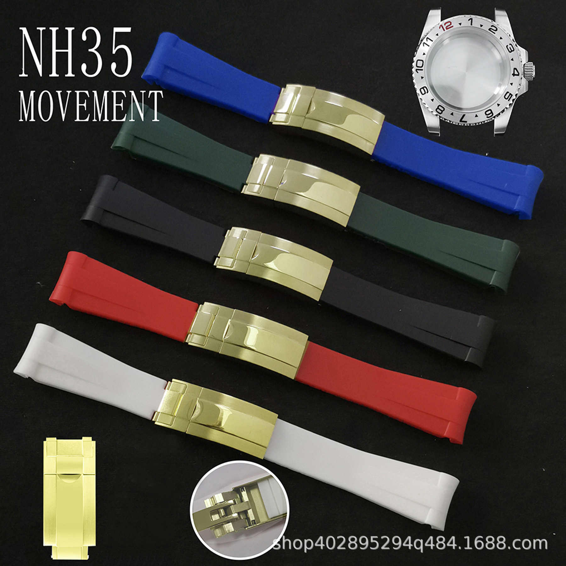 腕時計部品20mmゴムバンド黒/緑の歯を引っ張るスチールボタンは、私の店の40mmのsubケースに適しています