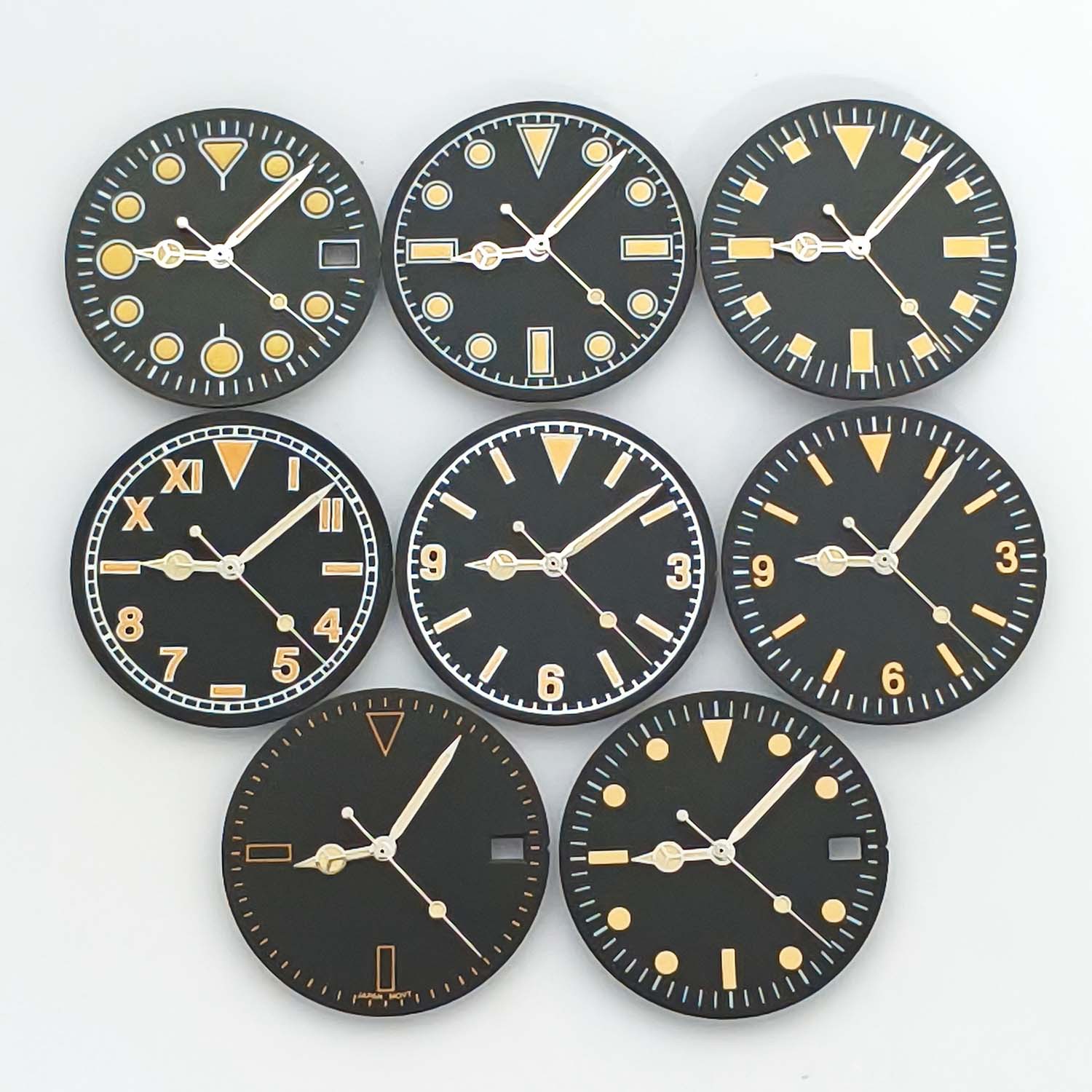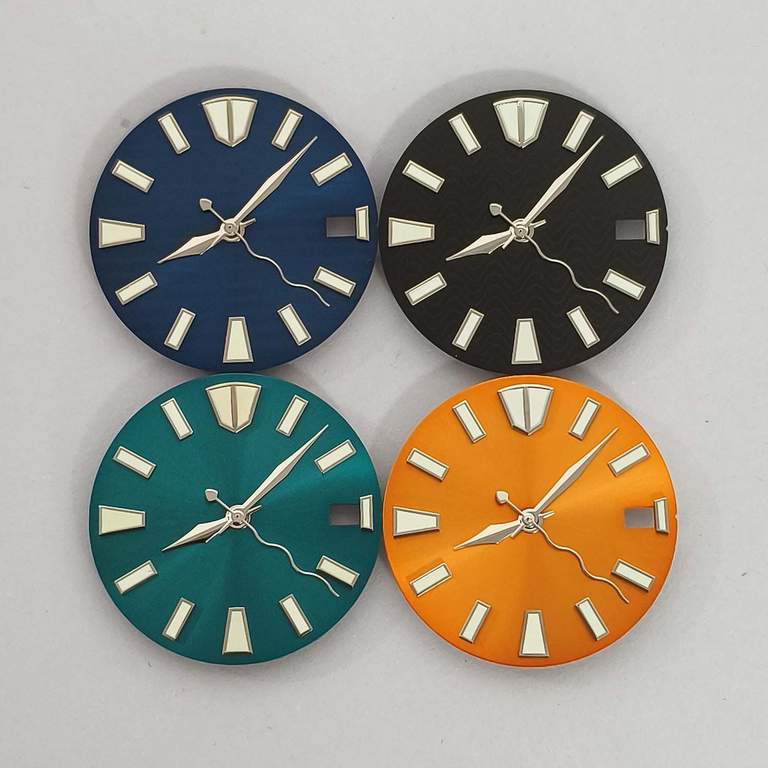 28.5MM ソーラーパターン文字グリーン発光メタルダイヤル + 時計針 NH35/36/7S ムーブメントに適しています