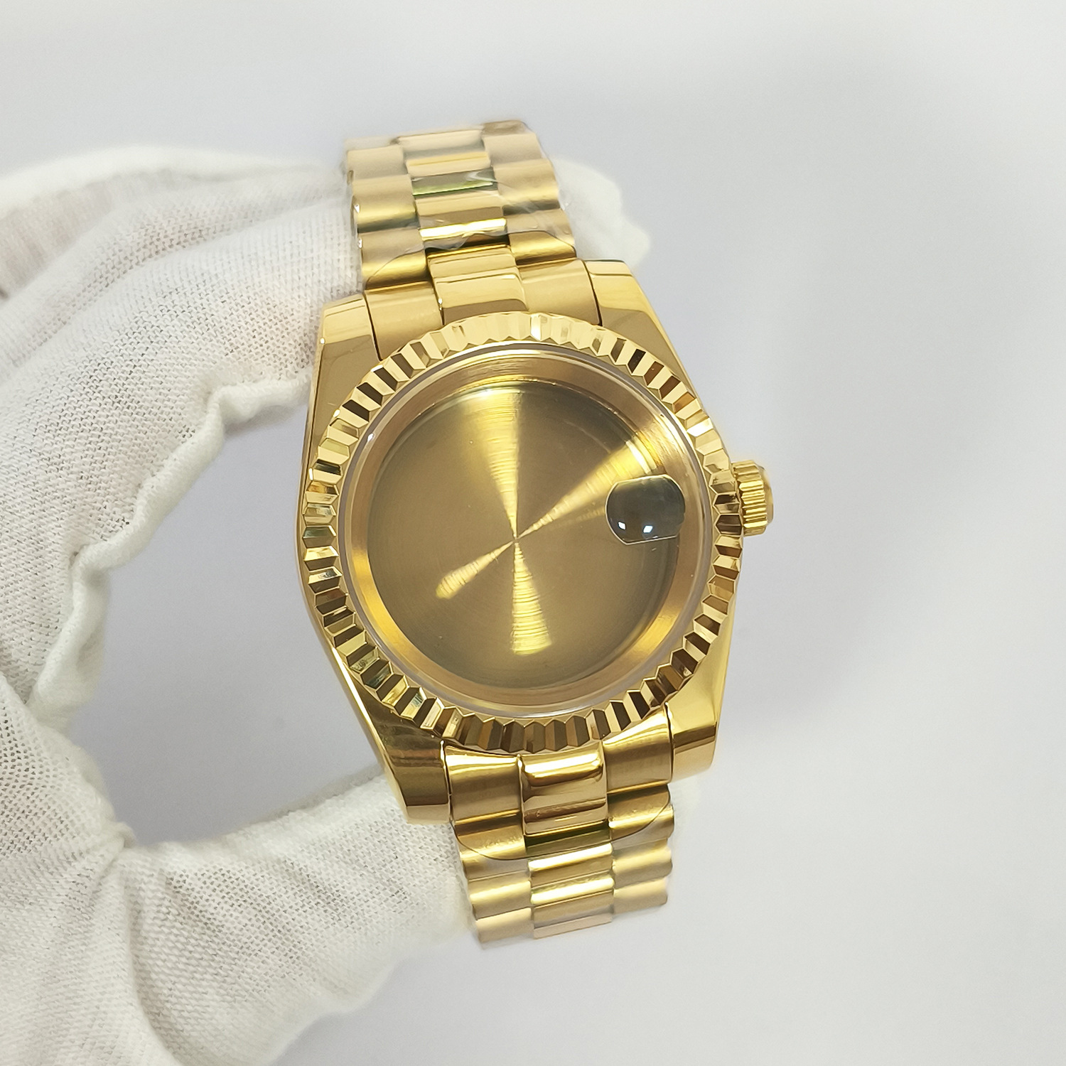 時計アクセサリー 36/39 ミリメートルゴールデン犬の歯ステンレス鋼ケースストラップサファイアフィット NH35/36/7S ムーブメント