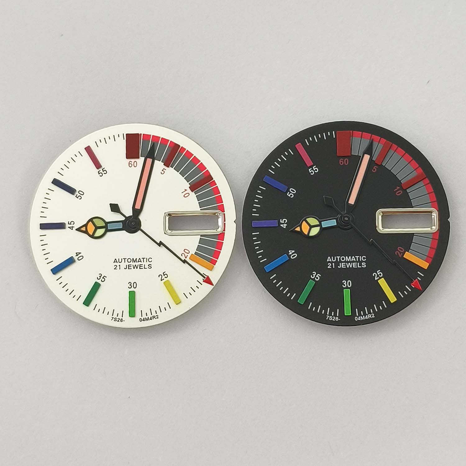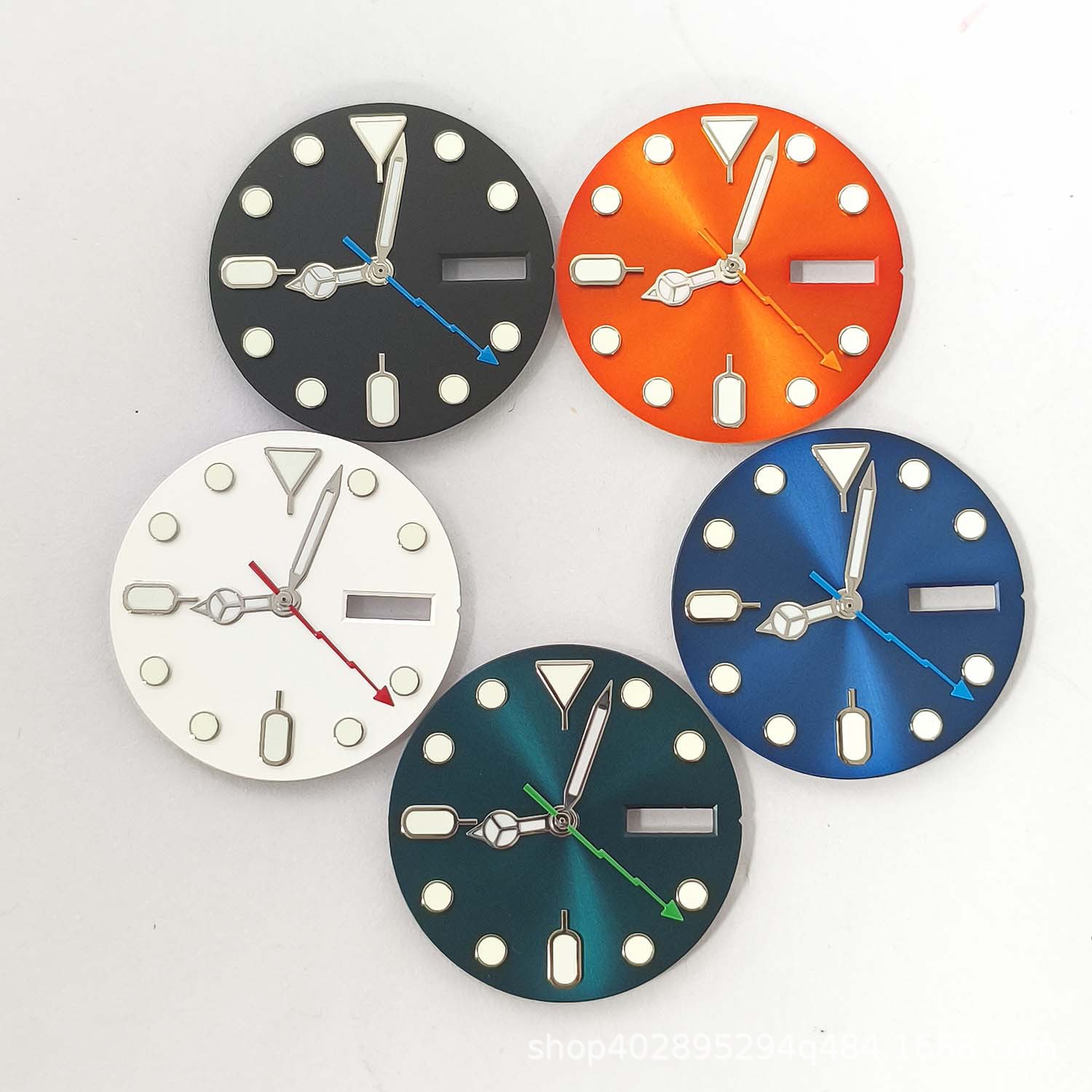 新しい時計アクセサリーカラーネイル 28.5 ミリメートルダイヤル + 時計針カラーピン発光デュアルカレンダーは NH36 ムーブメントを搭載可能