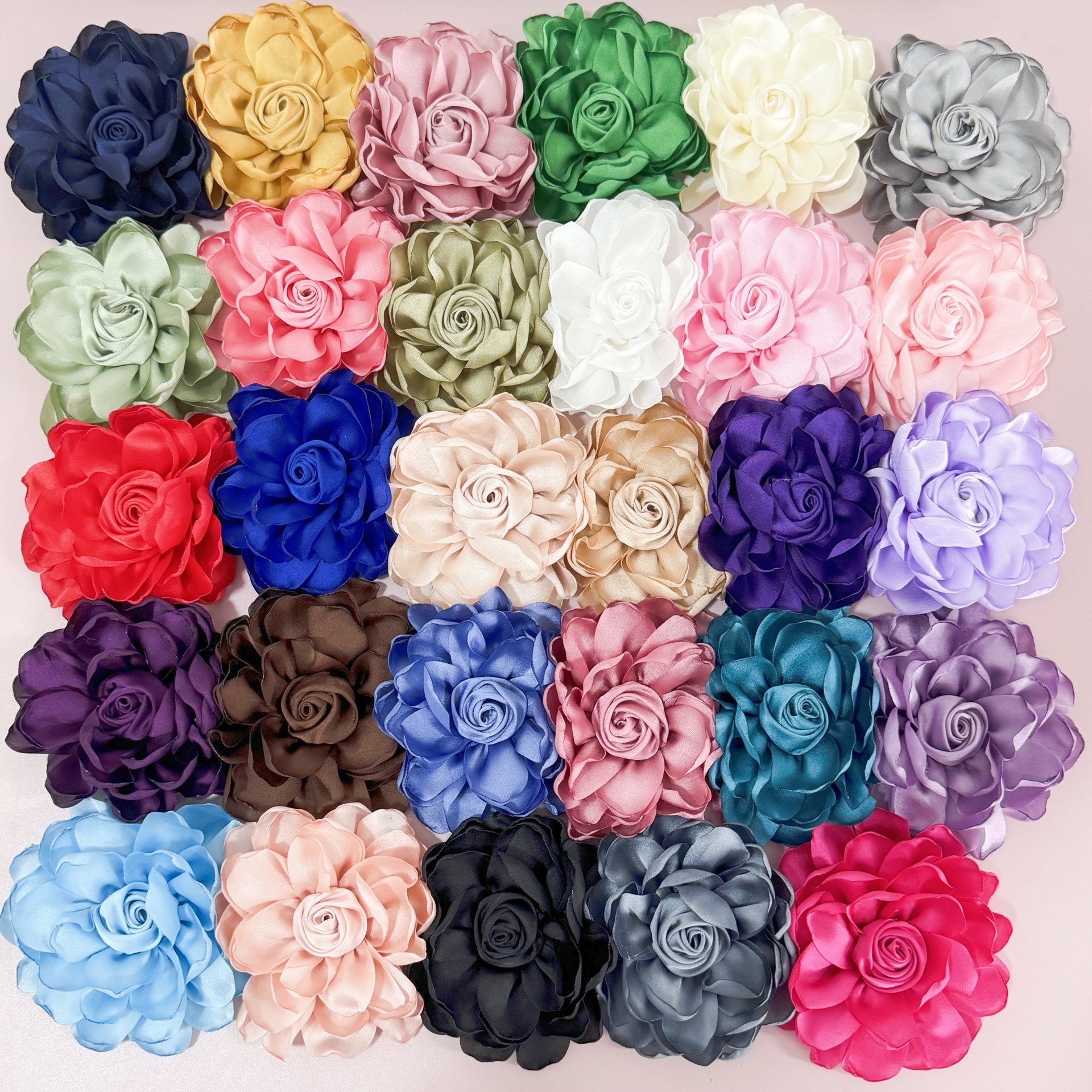 韓国版焼き辺布芸立体サテンバラ半製品diy髪飾り髪クリップ胸花飾り11cm