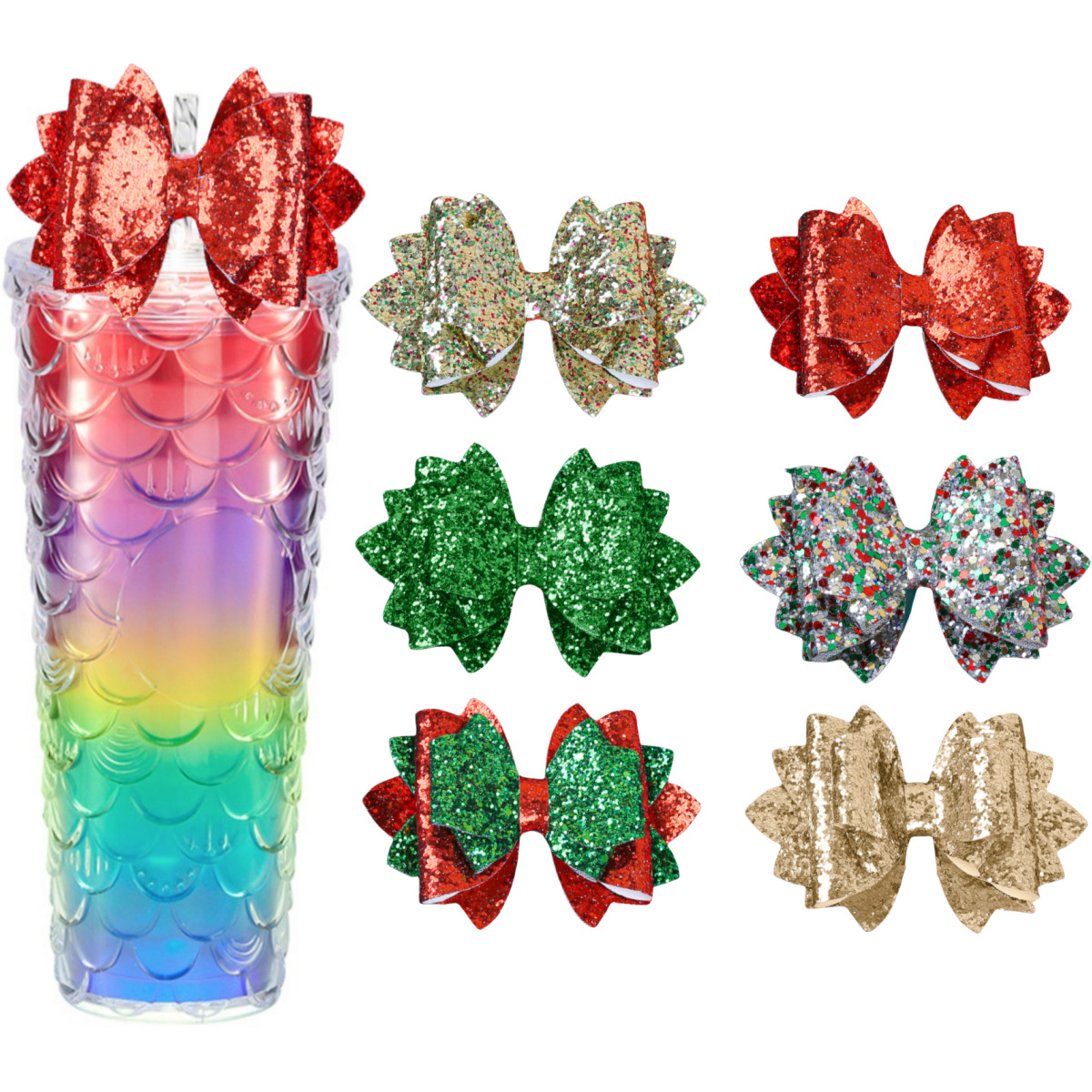 新しいキラキラリボンストローカップ、クリエイティブで高価値の装飾的なウォーターカップアクセサリー、スパンコールリボンヘアピンアクセサリー