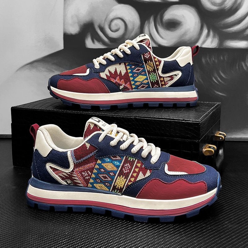 2025春の新型男性靴のファッションプリント刺繍運動カジュアルシューズは快適で厚い底が高くなります。