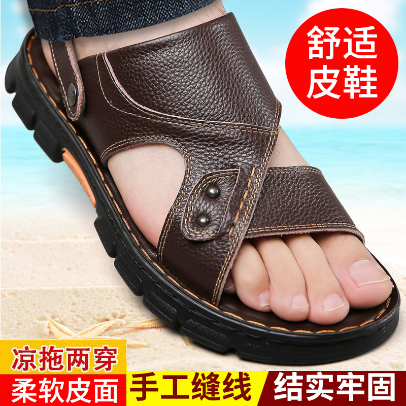 サンダル男性夏の新型皮面通気性屋外サンダル男性カジュアルビーチ靴ソフト底快適男性靴
