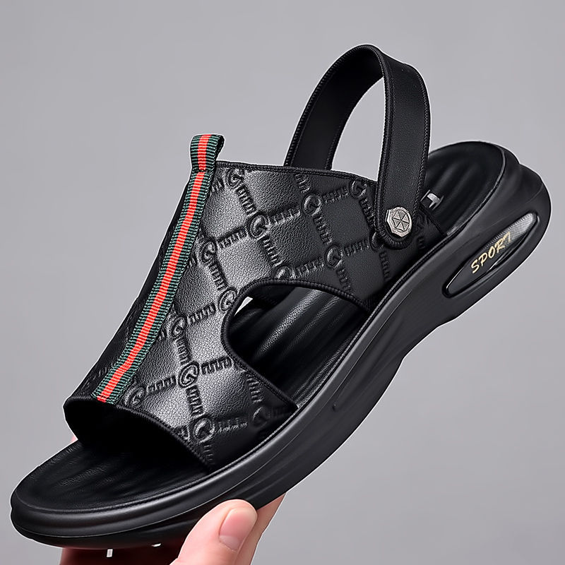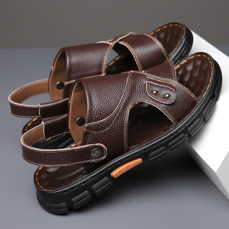 2024新型アウトドアカジュアルサンダル夏の皮面ソフト底滑り止めビーチ靴両用外着通気サンダル